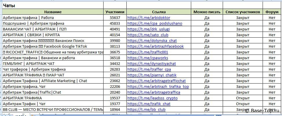 Каналы и чаты Telegram - Арбитраж (2200 шт)