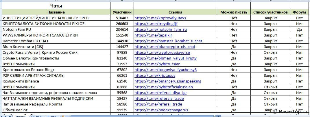 Чаты Telegram - Криптовалюты (150 000 шт)