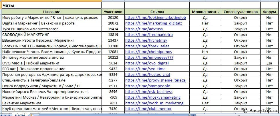 Каналы и чаты Telegram - Маркетинг и PR (2700 шт)