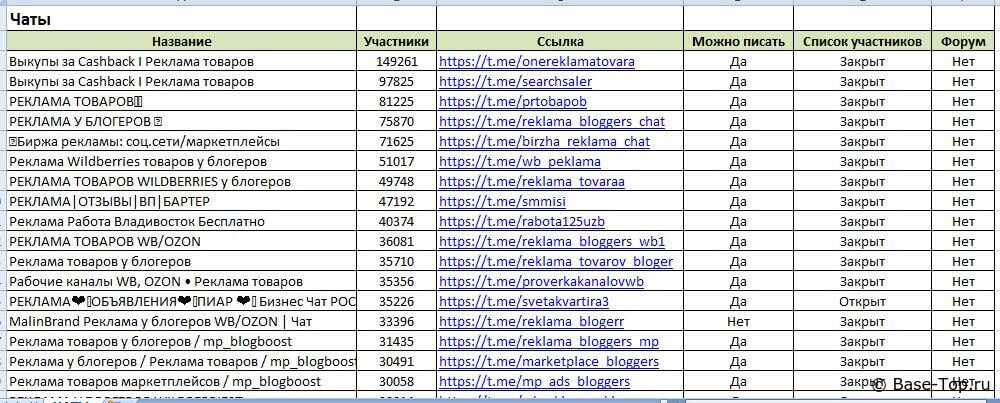 Каналы и чаты Telegram - Реклама (6000 шт)